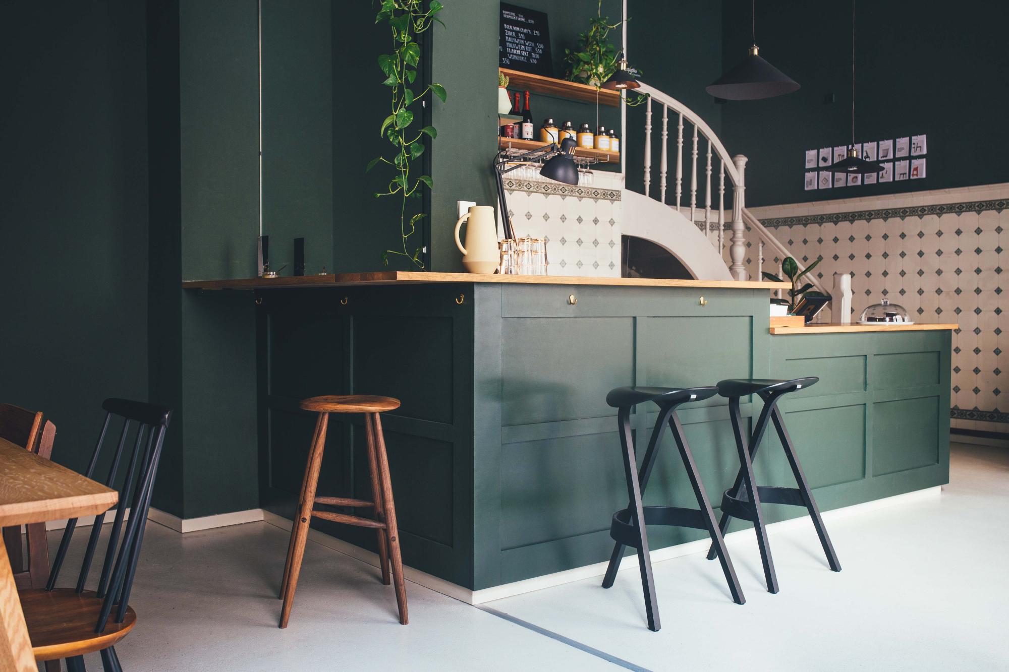 Für das Café Lauritz entstand dieser Tresen nach exaktem Raum- und Farbkonzept in einer alten Fleischerei. Die Front- und Seitenflächen wurden in tiefem Moosgrün matt lackiert, während die massive Eichenarbeitsplatte geölt ist. Im Arbeitsbereich haben wir eine Edelstahlarbeitsplatte gewählt, um den hygienischen Anforderungen gerecht zu werden.