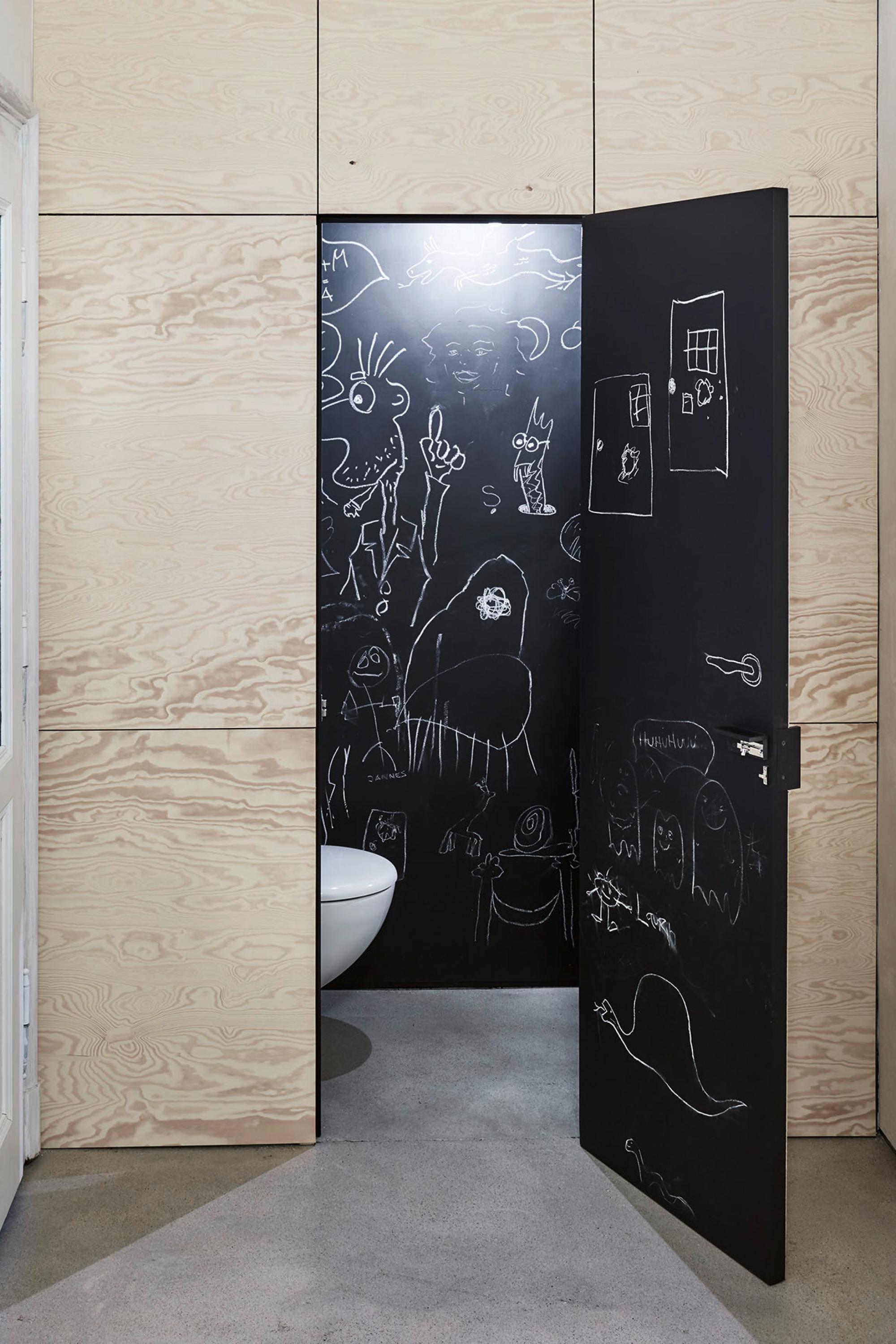 Große Loftküche, Wandverkleidung und Tapetentür